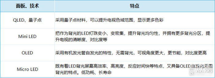 作为一台电视,核心自然是这块屏幕,不过现在市面上的电视,什么QLED、量子点、Mini LED、OLED五花八门,很多人上来光这个就直接看晕了,那么这些面板之间有啥区别的呢?
