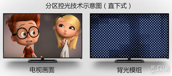 首先要说的,控光分区也好,背光分区也好,只是厂商在营销是叫了不同的名字,本质上是同一个技术。而这个技术存在的意义,在于将液晶电视的背板LED分成多个区域,每个区域实现独立控光,有了这个技术,就可以确保电视的画面在该亮的区域更亮,该暗的区域更暗,使得画面有更高的对比度。