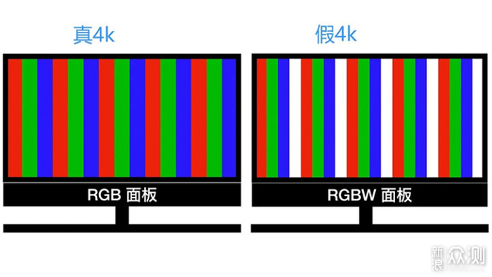 不过,需要注意的,并不是说标注了多少分辨率,就一定会给足你这个分辨率,以如今比较主流的4K分辨率来说,就曾出现过不少的假4K。这里面复杂的技术区别这就不完全展开了,简单来说,真4K面板只有红绿蓝三种颜色的像素,有效像素是820万;而假4K面板有红绿蓝白四种颜色的像素,有效像素是615万,主要是其中增加的白色子像素仅仅是为了提高LCD的利用率,并不能作为色彩像素,结果就是不但没有提升画面精度,反而还会造成影响。