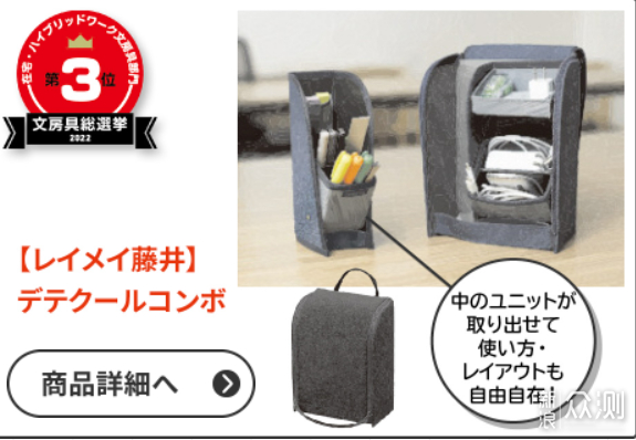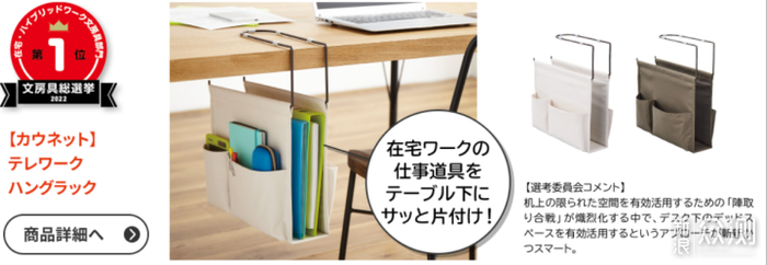 这是一款使得桌面有限空间实现扩大化的桌面收纳包,对于桌面以下的腾空区域实现了绝佳的应用,并且全包的结构设计非常出色,杂物、书本、笔记都能被完美收纳。需要说明的是,这个品牌的评选的赞助商之一,结构很有趣,可以买国内后续的仿制品。