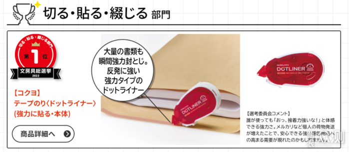 国誉的新款点点胶获得了第一名,相比于经典款,胶带变得更宽,结构上提供了防尘盖,并且粘性出色,使用时既不会弄脏双手,顺滑的结构也不会让胶区和纸张出现皱纹。