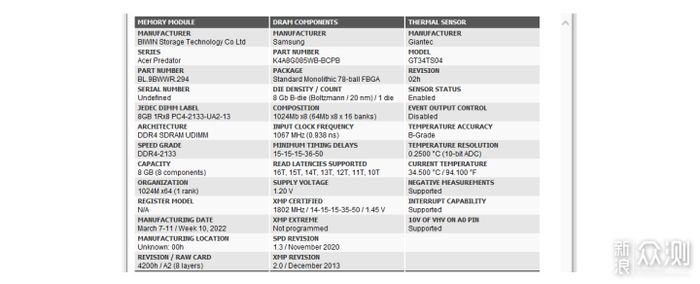 之所以选套条,主要还是看中其兼容性,毫无疑问两条内存的PN是同号的。在时序标注上,宏碁掠夺者Vesta为CL14-15-15-35,理论上的体质性能相当不错。