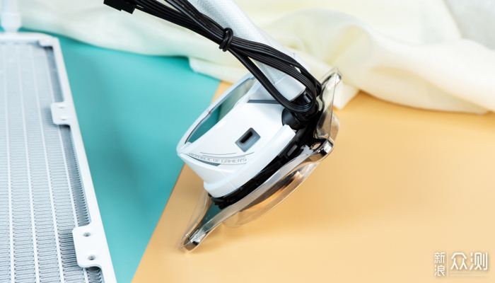 ROG吹雪360水冷的水冷头采用圆腔造型,表面由NCVM涂层覆盖。根据官方数据,ROG吹雪360水冷采用了第七代Asetek水泵,满载转速达3600,散热效能上会较前代更可靠,噪音也更低。值得一提的是,水泵的侧面留有Type-C接入口,支持在BIOS中控制内部转速。