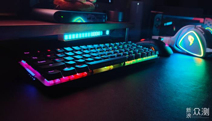 除了机箱里的光效外,桌面的RGB也很重要。如果和我一样,也是华硕平台的话,那么推荐把ROG败家之眼给支棱上。