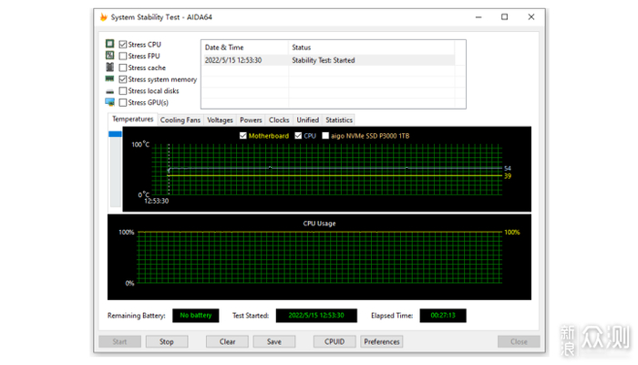 在AIDA64内压力测试运行25分钟,期间并无任何错误,稳定性毫无问题,显然宏碁掠夺者Vesta已在稳在了4266MHz。