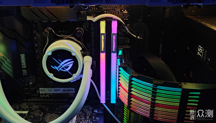 当宏碁掠夺者Vesta炫光星舰内存上机后,外壳的RGB灯条会自动点亮。因为Vesta炫光星舰内存采用常规的条状结构外观,灯带也是以长条式呈现。