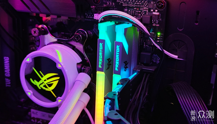 或许你要问为何要加一条宏碁掠夺者Vesta炫光星舰系列内存?因为它作为灯条内存来说,不仅支持华硕AURA SYNC,更可适配到微星、华擎或某嘉上,兼容性较强。配合同样以光为主的ROG吹雪水冷后,使机箱空间不再单调,是一加一有大于三的效果,能轻松打造成个性化游戏基地。当然,宏碁掠夺者Vesta炫光星舰的超频性能也不容忽视,稍许将CL14增到16即可稳定到4266MHz,以16-15-15-35时序的性能状态运行。