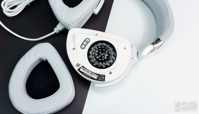 耳机单元外型使用D形设计,壳体的ROG LOGO为可发光设计,很符合败家之眼的风格。配合三角形外圈的灯光,当RGB亮起时,极具辨识度。