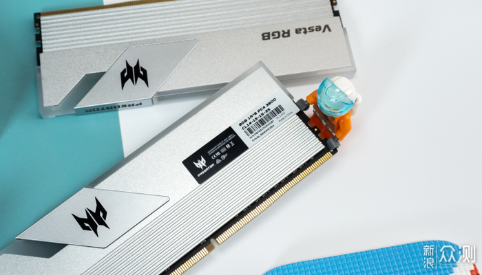 这个套条的产品系列名称是宏碁掠夺者Vesta,属于宏碁掠夺者RGB套条中的新款。宏碁掠夺者Vesta的外壳散热马甲采用铝合金材质,因此整体也为银配色。现在多数马甲条都是使用铝合金材质,毕竟散热和导热性都相当高效。