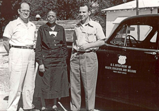1953年,David Allbritton医生、Eunice Rivers护士和Walter Edmondson医生在乔治亚州梅肯县进行年度总结。(图片来源:National Archives/Public domain)