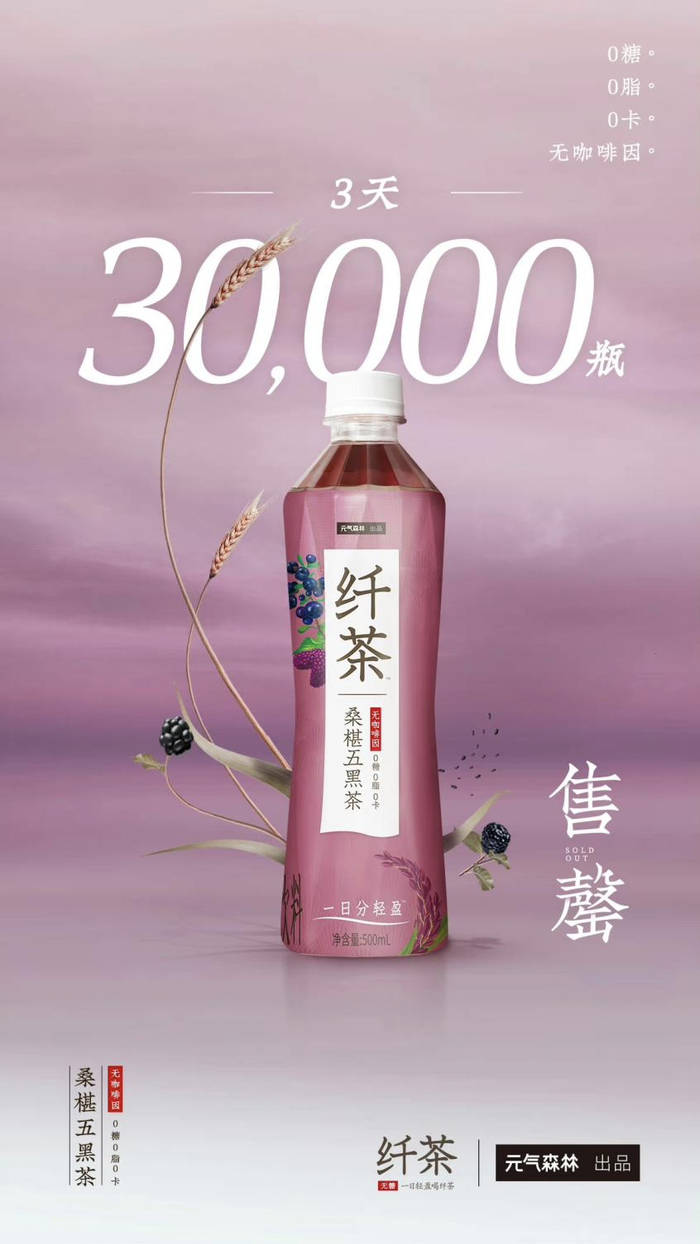 元气森林纤茶桑椹五黑茶上新3天售罄30000瓶