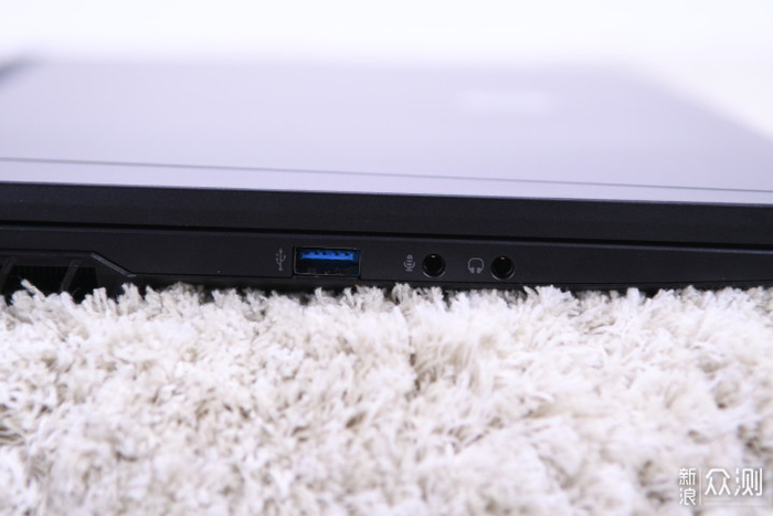 接口位于机身两侧和尾部,包含:USB 3.1 Gen1 Type-A x2、USB3.1 Gen2 Type-A x1、带DP视频输出功能的USB 3.1 Gen2 Type-C x1、HDMI2.1 x1、RJ45有线网络x1以及3.5mm音频接口。