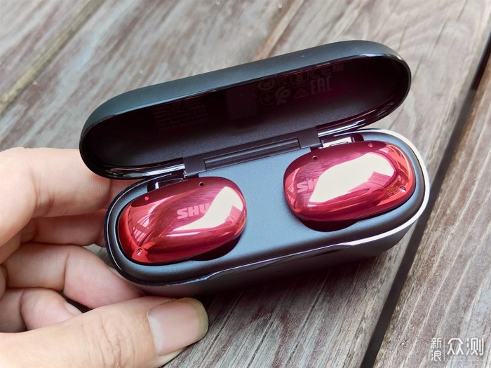 跟时下的真无线都往小巧轻盈的方向发展不同,AONIC FREE的巨大,甚至会让我觉得Shure是故意将其设计成类似珠宝首饰的效果。尤其是我入手的是红色版本,几乎抵得上我拇指一节手指大小的类金属反光面板闪烁着红色的反光,在太阳底下简直就是“万绿丛中一点红”般耀眼的存在。以至于我怀疑自己戴这么一副耳机走在路上,别人会投来有多诧异的目光?!