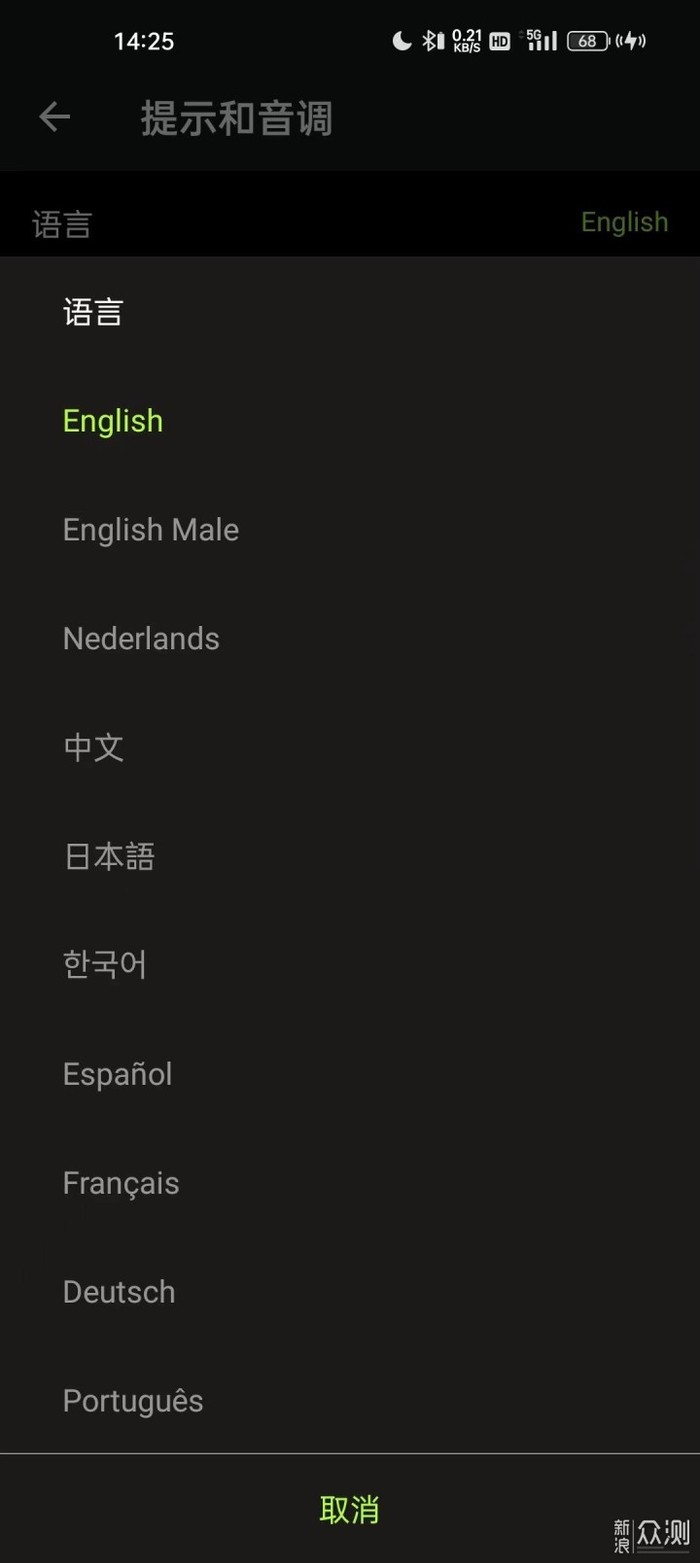 除此之外,另一个很好体现Shure舒尔大厂风范的小细节在于AONIC FREE可以设置提示音的语种,而且几乎覆盖了大多数全球的主流语种。
