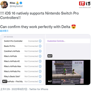 IT之家6月7日消息,据iOS游戏模拟器Delta的开发者RileyTestut的发现,苹果在iOS16中悄然增加了对任天堂Switch的Joy-Cons和Pro手柄的支持。