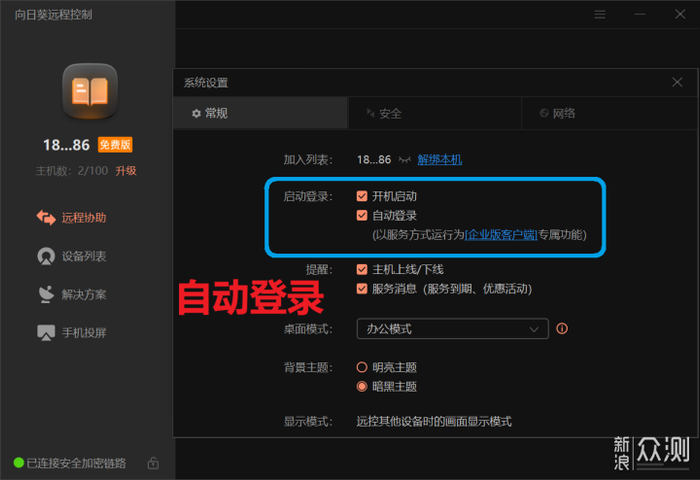 需要强调一点,台式电脑的向日葵客户端,需要设置为无人值守模式,这样才能使用鼠标通过iPad远程控制办公室的台式电脑。为了安全起见,可以激活本机登录密码模式。设置后,直接输入台式电脑的用户名和密码就能远程登录。