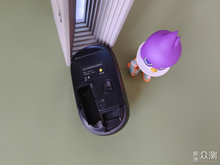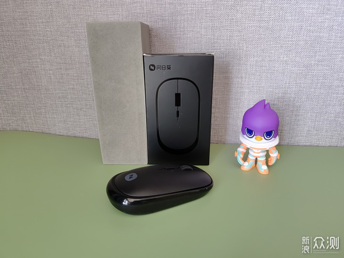 打开包装盒后能够看到向日葵智能远控蓝牙鼠标,还有随机赠送的一节5号电池,这一很贴心,需要点赞。