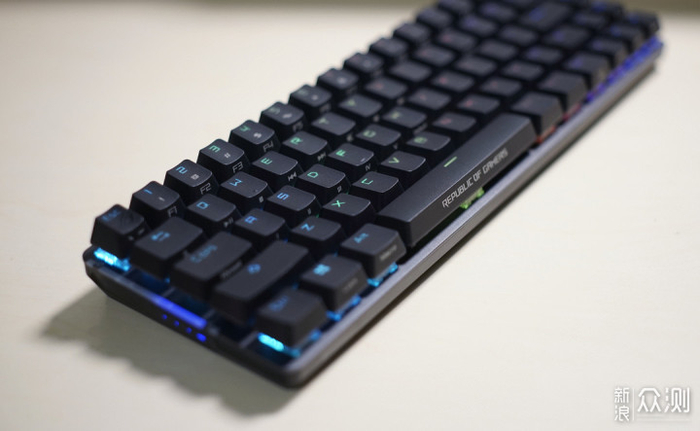 OK,那提到灯效,我就要介绍一款非常精致的带有RGB灯效的小键盘,那就是来自ROG的魔导士。这款键盘采用了键圈非常流行的68键配列,在尺寸与实用性上做到了平衡。在RGB灯效方面多种模式可以选择,并且还能搭配ROG神光同步特效,让你的色彩得到完美的释放,另外键盘采用了PBT键帽、三模连接以及简洁的外形设计,总之这把ROG魔导士绝对没有丢失“败家之眼”的名号。