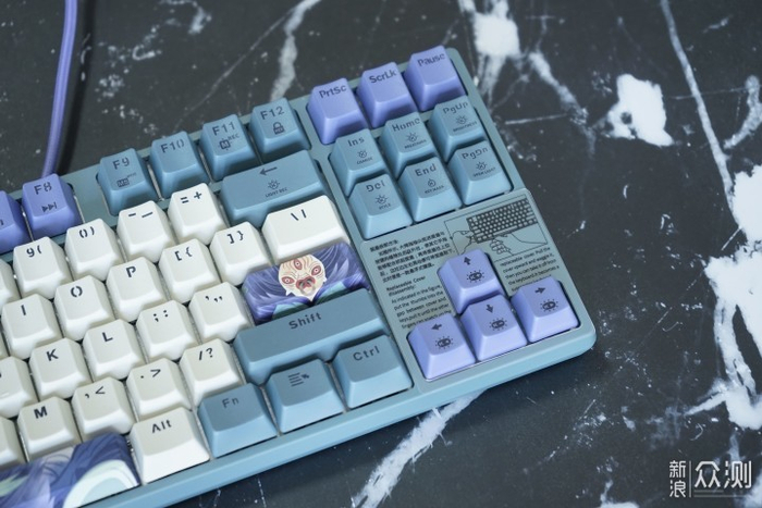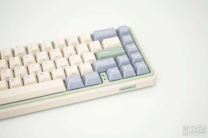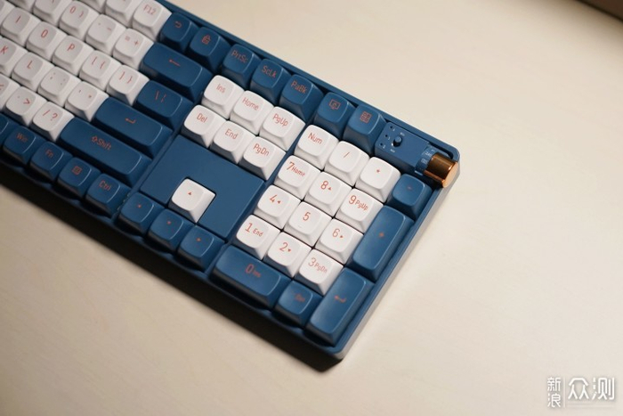 这款阿米洛迷你系列键盘采用了静电容V2鸢尾蓝轴,虽然很多人对于静电容并不是太了解,但是如果你用过一次就会知道那种软糯的手感非常的独特,用长了绝对就回不去了。另外这款键盘还采用了热插拔工艺,可玩性更高。布局方面键盘采用了客制化常见的“门牙”配列,并且在上面安装了指示灯,挺有创意的。那在配色方面自然不用多说,阿米洛对于颜色处理还是很有心得的,整体看上去这把键盘清新、淡雅,二色键帽的表现也细腻、柔和。