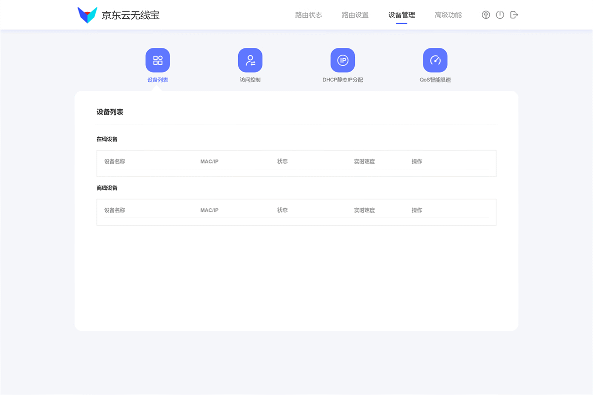 设置界面方面,AX3000后羿路由器分类清晰,分为路由状态,路由设置,设备管理以及高级功能四个板块,每个板块下又将设置细分,可以让用户根据需求进行详细设定。