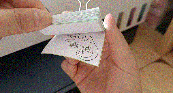 看,小侄女做的迷你动画,手指翻动这些图片,一张张普通的画纸演绎出了一小段动画。
