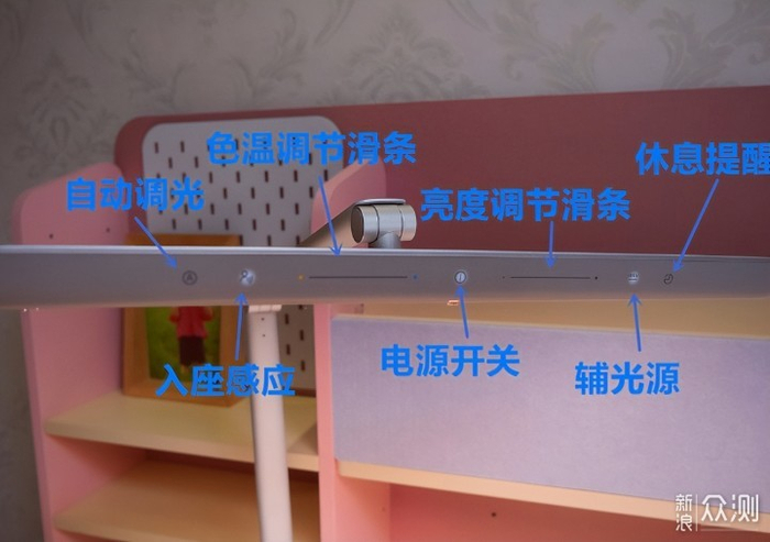 外表看起来很简洁,但是飞利浦A5灯头上的功能却非常丰富,包括自动调光、入座感应、色温调节、亮度调节、辅助光、休息提醒,一应俱全。