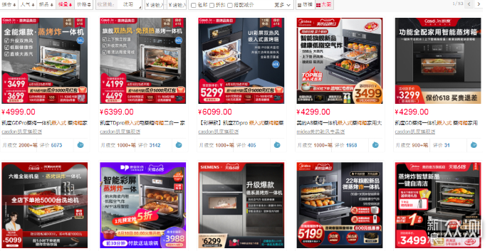 天猫搜嵌入式烤箱销量排名前8的都是蒸烤一体