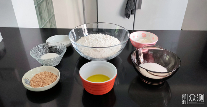 食材:中筋面粉350克,盐2克,白砂糖120克,开水100克,食用油20克,水(常温)80克,20克干面粉,30克熟芝麻。
