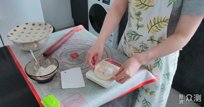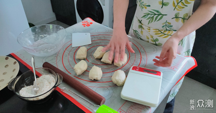 揉好的面团包上保鲜膜放入冰箱冷藏1小时。取出面团擀成1-2公分厚的圆饼,然后将其分成8等分或者更多。(根据个人喜好决定)