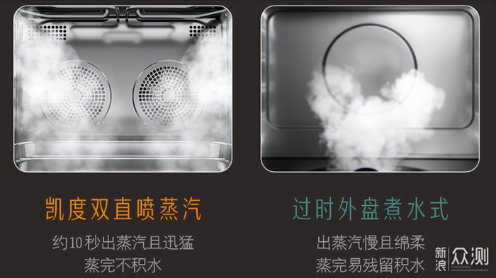 凯度采用了脉冲双直喷型蒸汽,对冲式直喷型蒸汽可覆盖50-125°C温域,低温蒸适合蒸制虾仁,鸡胸,溏心蛋,海参等,通过“低温蒸熟”的海参,在食用时不需要水煮水发,有效的避免了海参中怕高温和水溶性核心营养物质的破坏与流失,口感也非常的劲道。高温蒸适合蒸制馒头包子,海鲜,粽子等,穿透力更强,可以大大缩短蒸制时间,同时将食材的营养成分锁住,保证营养和美味兼顾,蒸出来的包子馒头也更更为松软。