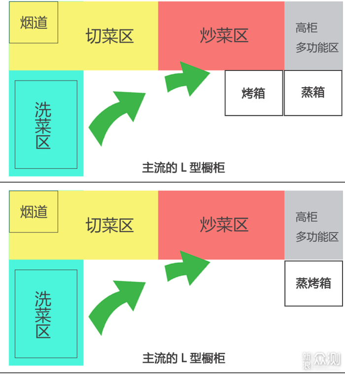 箱、蒸箱目前也是年轻人非常喜欢的厨房家电。烤箱可以做烘焙,做烧烤;蒸箱可以蒸鱼、蒸蛋,做很多好吃的蒸糕。但是如果这2个分开买,那么你就需要一个巨大的厨房了。毕竟这三个东西可是十分占地方,而且占用的还是厨房层高的中间位置,可以说是黄金位,如下所示: