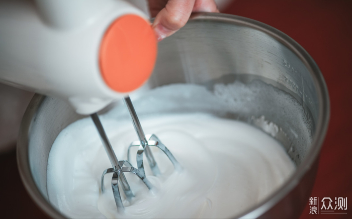 打发到提起打蛋器有小弯钩即可~