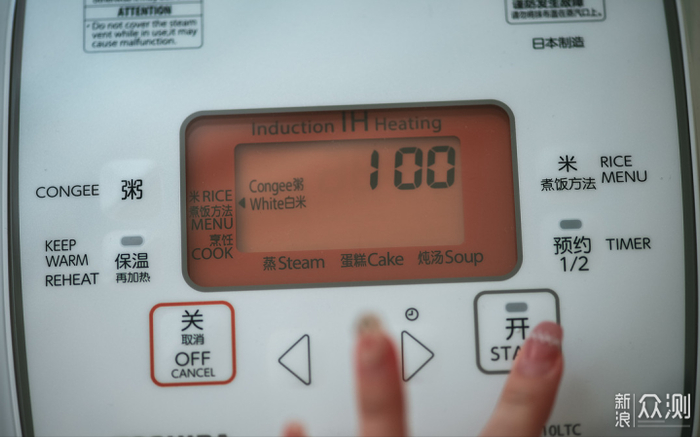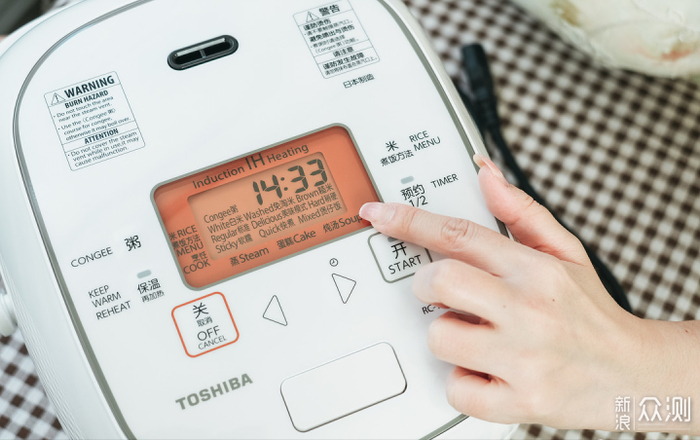 选择白米+美味模式程序。东芝采用内嵌式微压阀,防止溢锅不用做饭时一直看着。