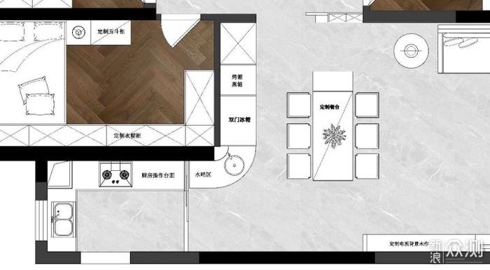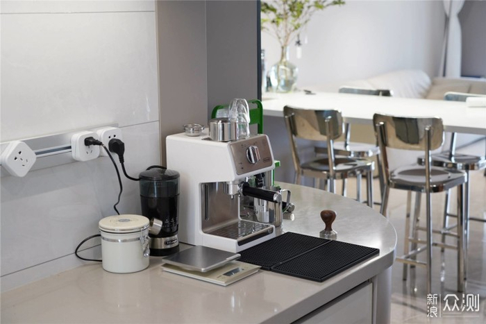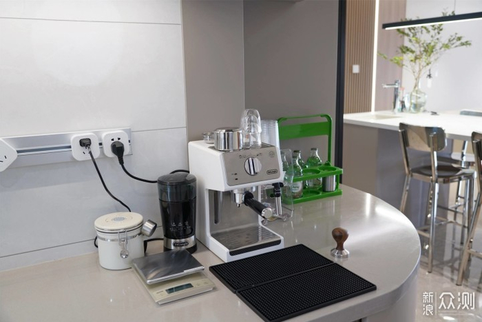 ▲我和女朋友都非常喜爱喝咖啡(尤其是卡布奇诺和生椰拿铁),所以设计师原始设计稿中,在双门冰箱旁边设计了一个圆弧形咖啡角。
