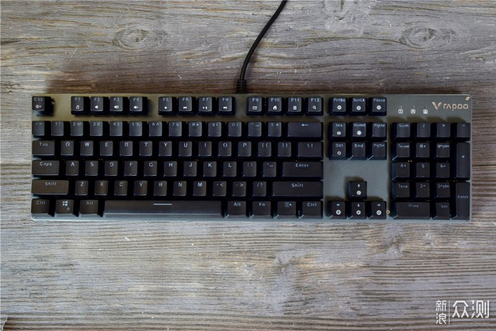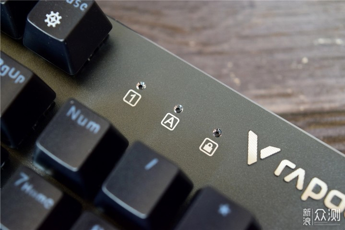 键盘的按键采用了雷柏自主红外银轴,手感类似于青轴,而且由于采用了红外光阻断的方式导通,不仅可以让信号传输更稳定,还具有防水防尘效果。
