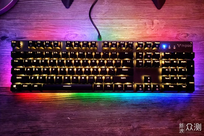 雷柏V520 RGB合金版的边框背光灯带支持单独开启或关闭,上图为关闭边框背光灯的效果,相比双灯效全开时,会稍显低调些。