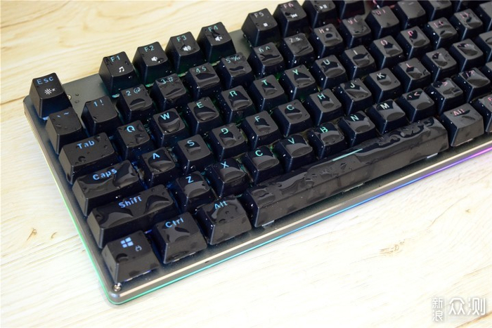 通过上面的动图可以看到,不要说液体意外洒入键盘,我直接拿水往下倒都没问题,依旧能正常使用,防水效果还是很不错的。平时键盘脏了可以直接用水冲洗下,当然并不建议经常用水冲洗。