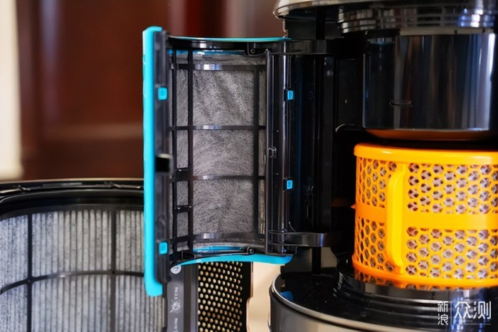 ▼这点从机身的结构上就能说明,PH04采用了有点像“同心圆”的一种设计理念,按下两侧的卡扣后,可以将对称设计的滤网打开。
