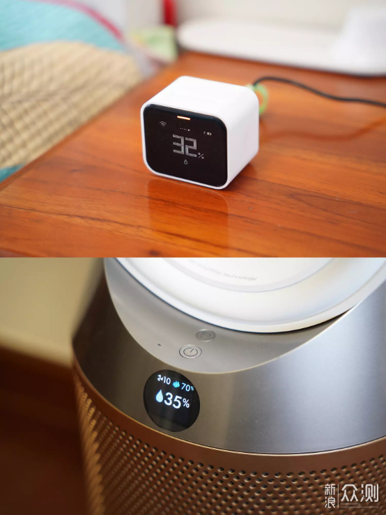 ▼戴森加湿空气净化风扇PH04在净化空气的同时还有加湿功能,具体的加湿能力我也进行了测试,开始时床头附近的检测仪湿度为32%,机身传感器的湿度为35%。