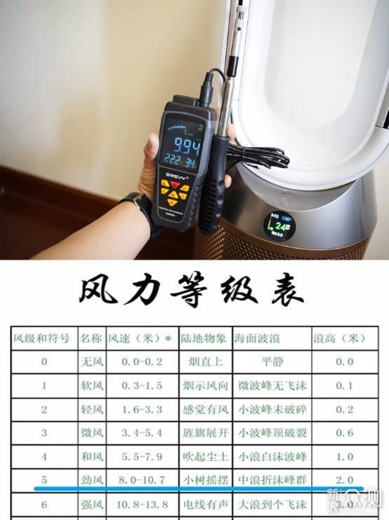 ▼此外在扩散模式下的风力我也进行了测试,最大风速也可以达到5~6m/S左右,也足以起到循环室内空气的作用了。