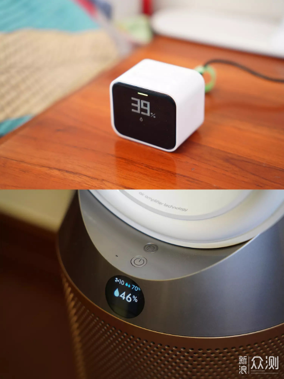 ▼经过1小时之后,远端的检测仪显示湿度为39%,上升了7%;机身上的传感器数值为46%,湿度上升了12%。光看数值可能不是很直观,但我之前在同样的环境下使用独立的加湿器做过测试,1小时中不同产品大约能将全屋的湿度提升12~15%,这样一对比,戴森加湿空气净化风扇PH04的加湿能力也和独立加湿器比较接近了。