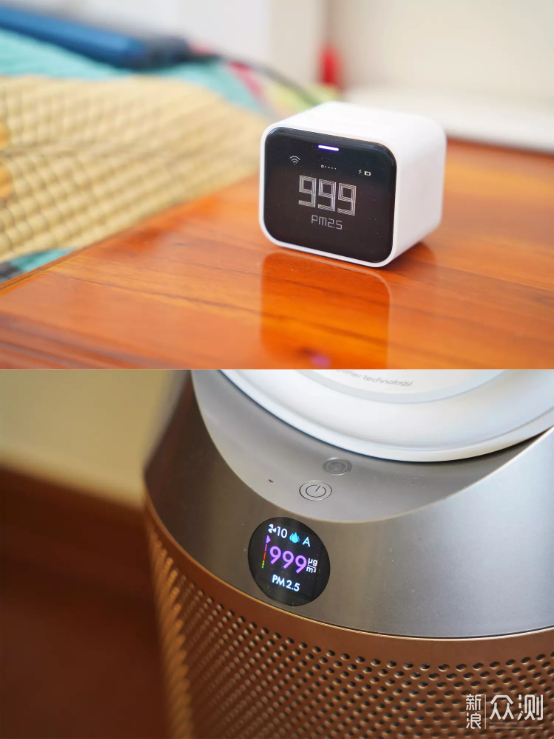 ▼测试仪器使用的是空气质量检测仪,为了确保测试数值更加准确,我将检测仪放在了距离戴森PH04大约3米远的床头柜上,避免净化后的洁净空气直吹影响数值。