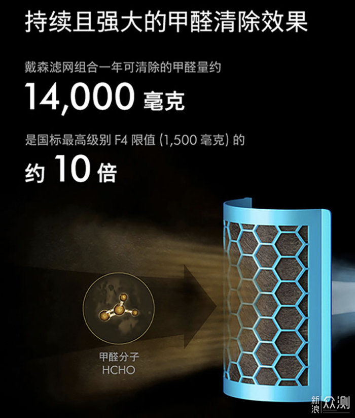 ▼而戴森加湿空气净化风扇PH04使用的催化氧化滤网有一层特殊的涂层,可以有效捕捉甲醛分子并将其分解成二氧化碳和水,从而实现长期清除甲醛的作用。考虑到甲醛的释放时间少则3~5年,多则5~10年,这样的方式无论从使用成本还是除醛效果上都要比活性炭好得多。