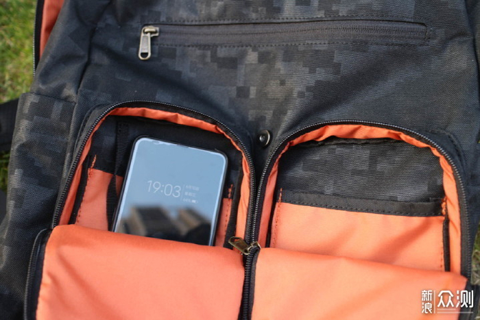 ▲买包包第一条是看眼缘,其实就是第一眼的颜值如何,但真正决定你买不买的,绝对是各种小细节。比如这款包包的双前侧小兜,一看就喜欢。作为一个晚期强迫症的处女座,对物品的收纳管理是深入我的DNA的。一般的双肩包,前面的包袋也是仅有一个大通铺,所有小杂物都睡在里面,亦或者那些开口帆布包,的确很森系,但是想从其中找个家门钥匙都难,杂乱劝退。而tomtoc A90双肩包前面分做了两个小口袋,这样东西可以再细分,想要找什么,直达目的地。尤其是外地旅行出差,说实话尽量财不外露,只打开一个小口袋迅速找到东西就拉住拉锁,最方便也最安全。