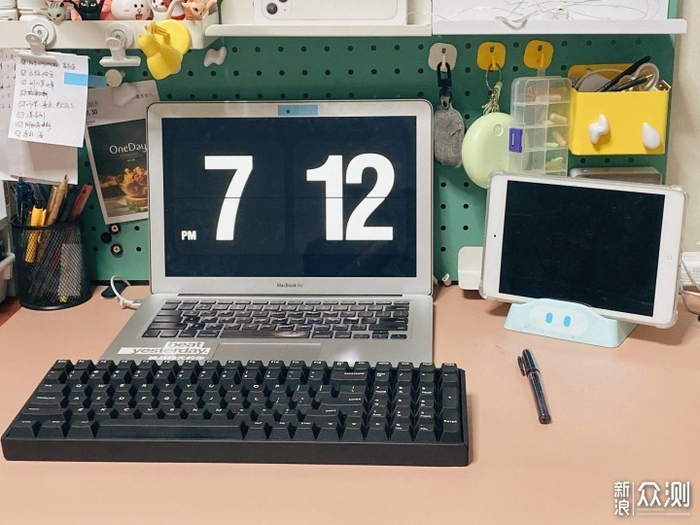 ▲你们看着网上的桌搭图片都超级精美吧?但实际我们的工作场景里哪能保持那么清爽啊,往往都是各种资料、手册摊开一桌,各种线材混在一起,所以支持无线使用的F97黑武士键盘就特别适合办公室工作了。