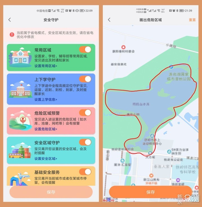 它可以手动画出危险区域,比如河流、湖泊、水库、工地等等,想画哪里画哪里,只要孩子去这些地方就会收到预警。现在正值夏季,儿童溺水情况越来越多,有了这个功能以后相信一定能帮助孩子远离溺水了。