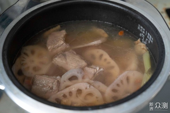 首先先将排骨用凉水焯一遍,将赃物去掉。再讲焯好的排骨、少量葱段、少量姜片、切好藕片(还可根据自己的口味加胡萝卜、玉米等)放入苏泊尔远红外电饭煲中,再倒入开水,没过食材。