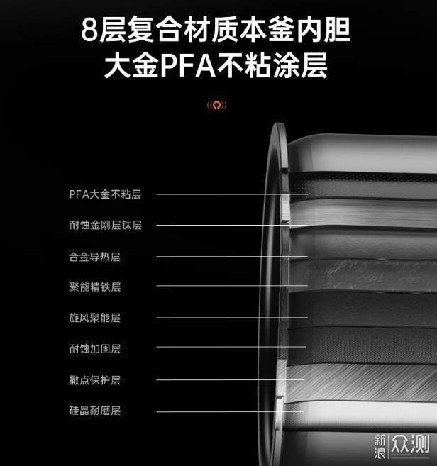 内胆材质采用的是八层复合材质本釜内胆,最内侧是PFA大金不粘涂层,在清洗锅底时十分轻松,只需要用洗碗布轻轻一抹,锅底的赃物即可清洗干净!