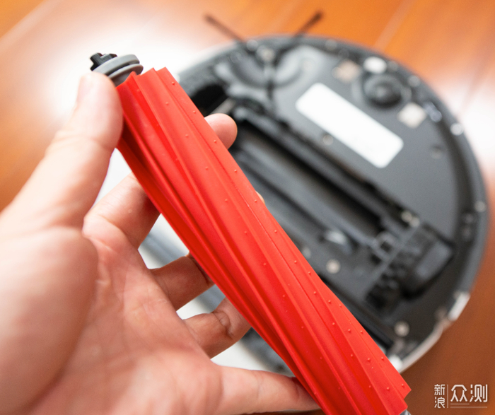 边刷和吸力其实对于扫拖机器人来说是不够的的, 石头T8 Plus采用了石头G10S同款, 也是家族同款的全向浮动的主刷模组,可以灵活自由的摆动,更贴合地面。 平坦还是崎岖全部不在话下。 清洁能力可见一斑。