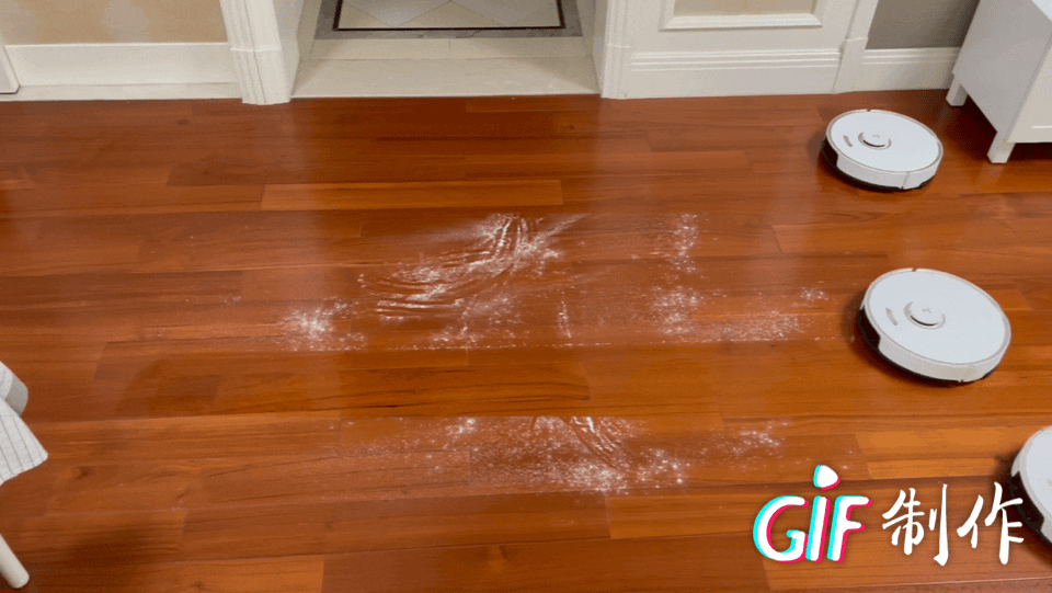 我这里使用了面粉演示大量粉尘环境, 可以看出石头扫拖机器人扫拖一体的能力非常不错。